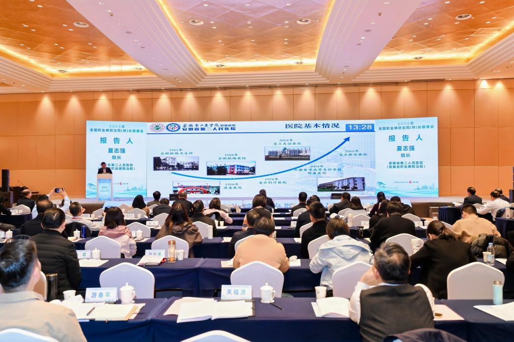 发布时间:2025-12-19 点击:7011月28日-29日,由广东省职业病防治院主办,安徽省第二人民医院(安徽省职业病防治院)和安徽理工大学共同承办的2025年全国职业病防治院(所)长联席会在合肥市召开。国家卫生健康委职业健康司相关处室主要负责同志出席会议并讲话。国家卫生健康委职业安全卫生研究中心主任樊晶光,安徽省卫生健康委党组成员、副主任、省疾病预防控制局党组书记、局长刘志荣,中国疾控中心职业卫生与中毒控制所所长孙新,中国疾控中心辐射防护与核安全医学所副所长拓飞,医院党委书记丁文荣出席会议并致辞。医院党委副书记、院长夏志强作题为“医防融合 协同创新 全面推进新时期省级职业病防治机构高质量发展”主题报告。